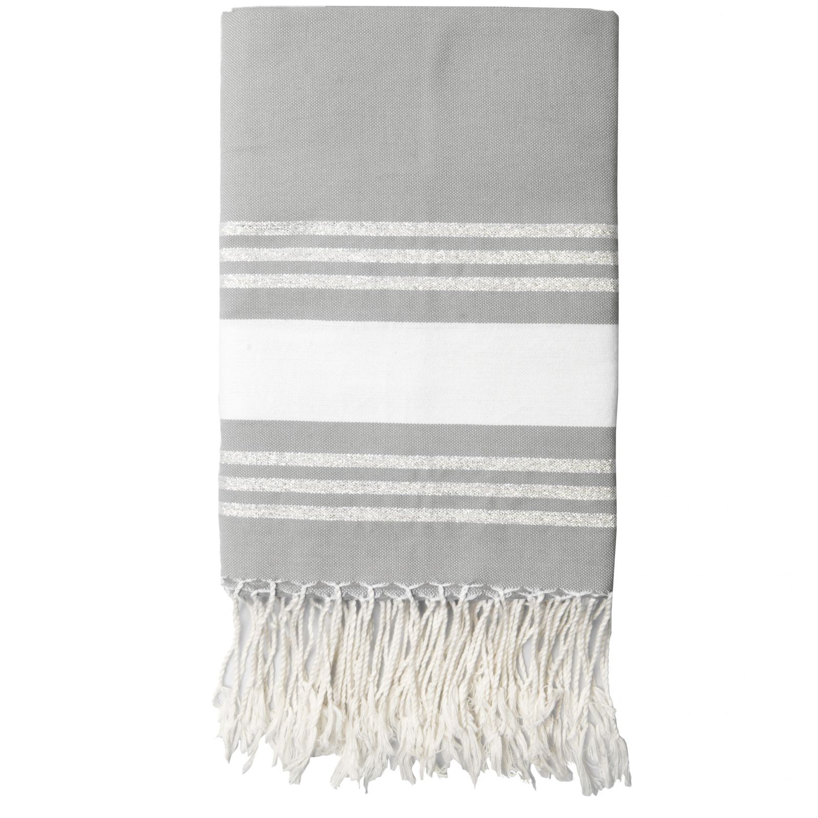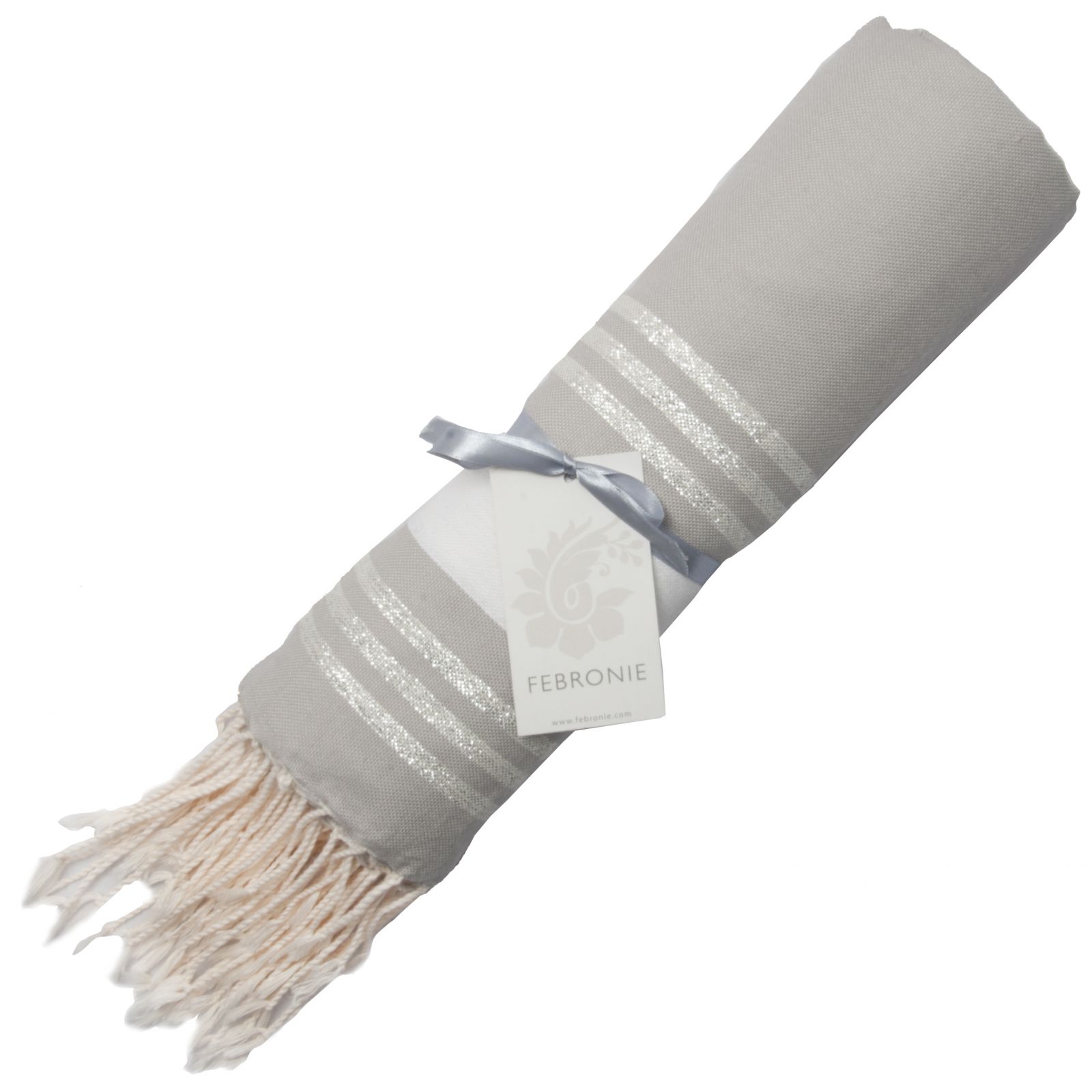 Titre : Fouta St Barth Gris Perle / Blanc / Argent