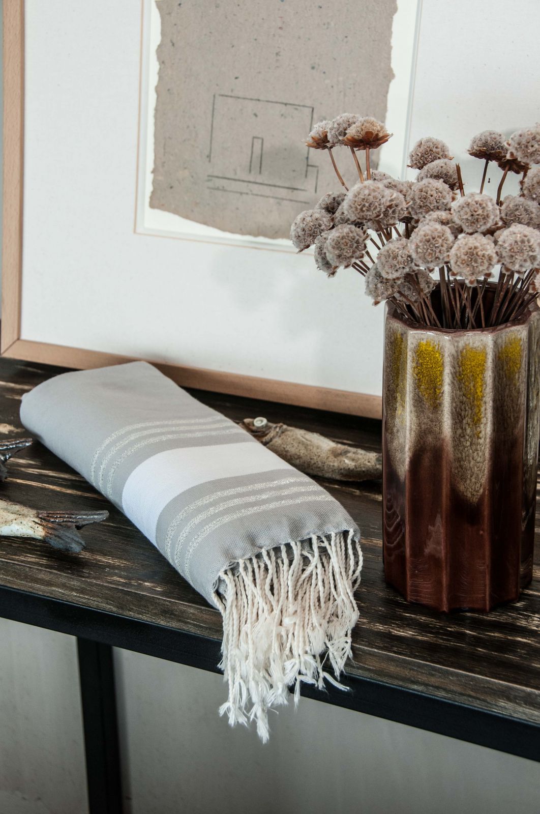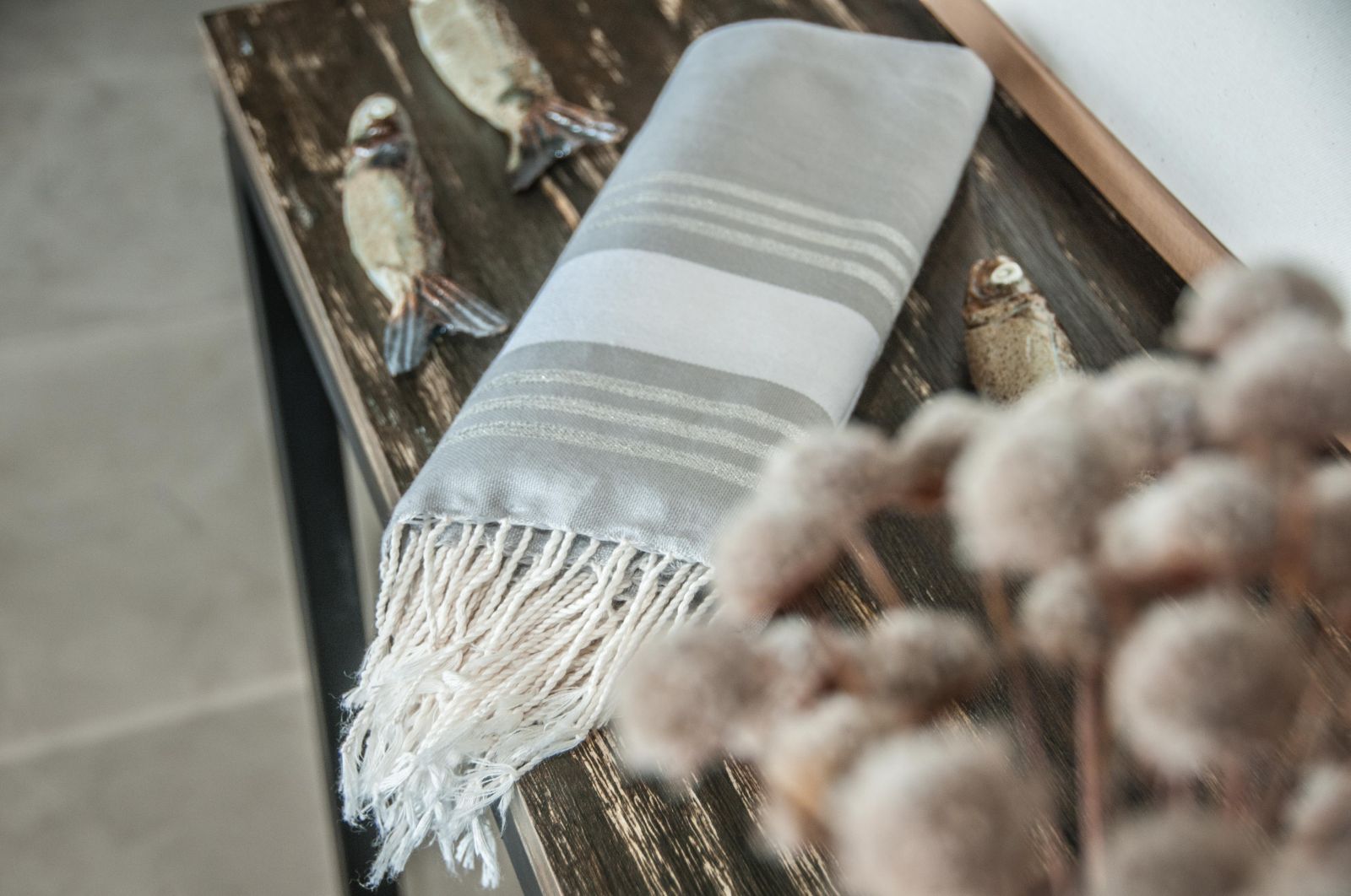 Hand-woven by artisans in southern Tunisia using 100% natural materials, - the Fouta Lurex "SAINT BARTH" combines lightness with incredible absorbency. Light and easy to maintain, its wide range of colors and the quality of its weaving allow many different uses. In addition to being the versatile accessory of our summers; beach towel, pareo, scarves, stoles, it has become the essential object of decoration of our interiors and outer, draped over the back of a chair, neatly folded at the end of bed .... it brings instantly chic and elegance to your interior.