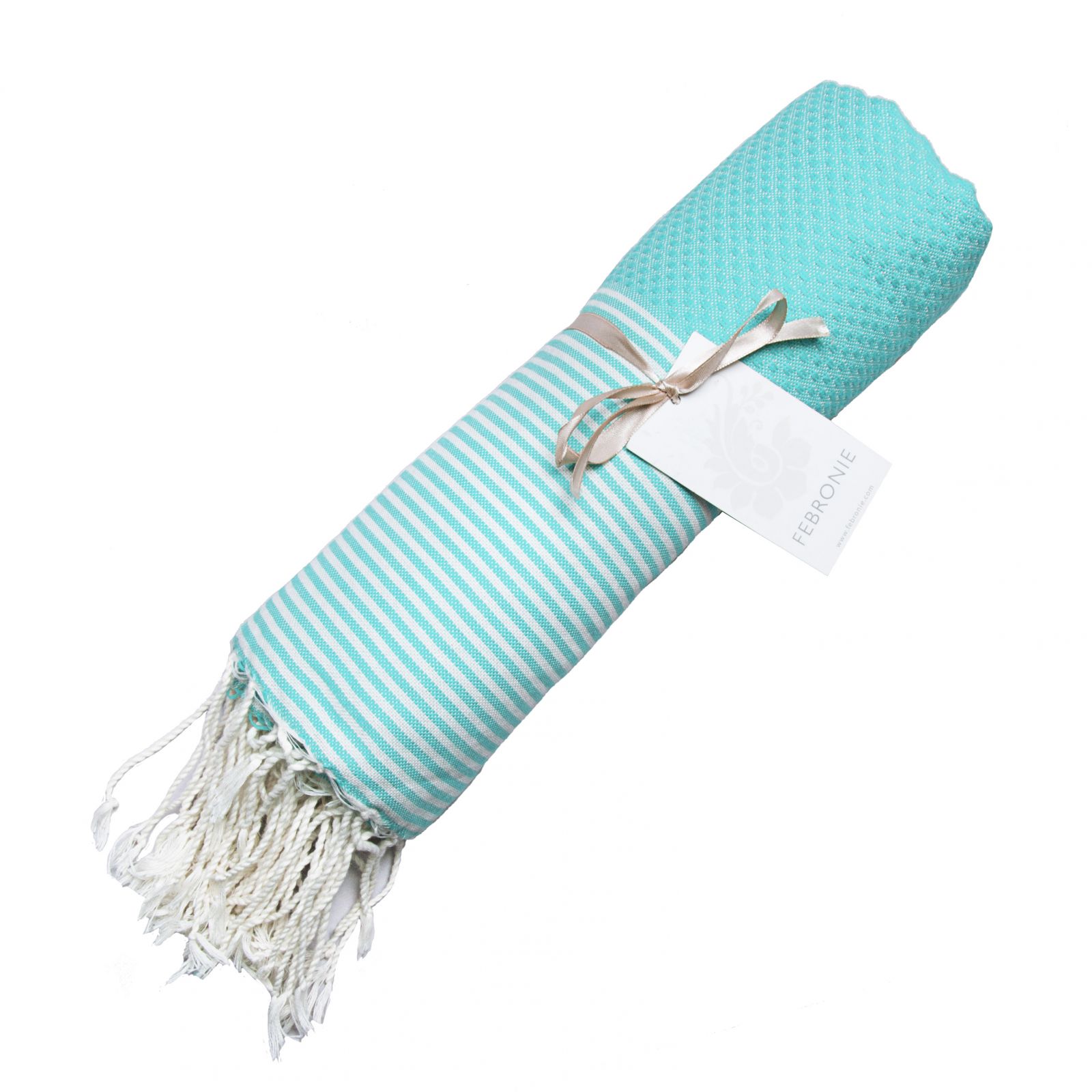 Titre : Fouta Nid d'abeille Ibiza - Rayure fine - Aqua