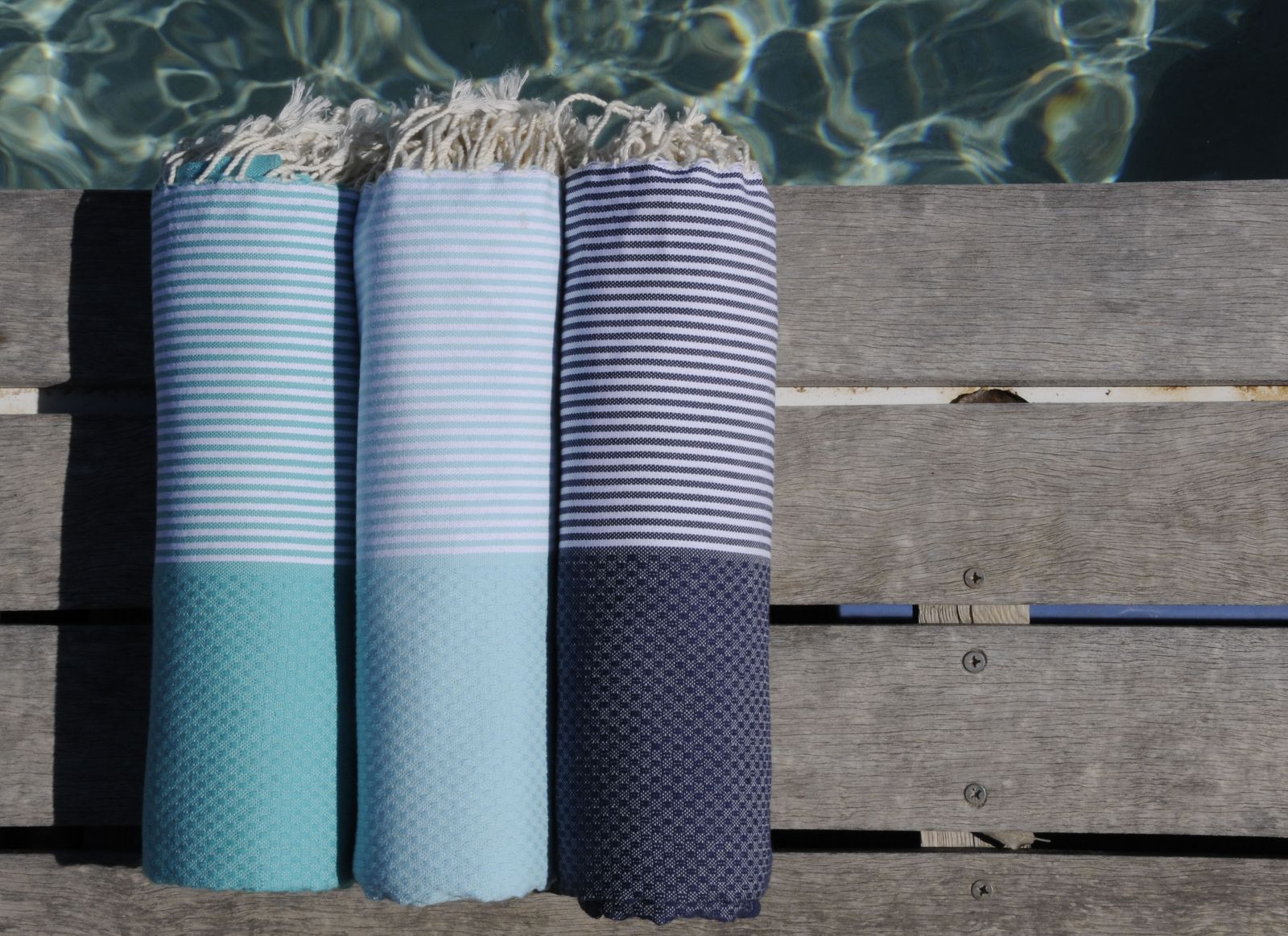 Honeycomb Fouta Ibiza - Thin Stripes - Aqua