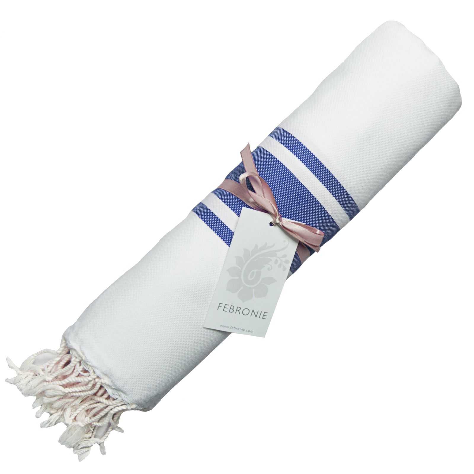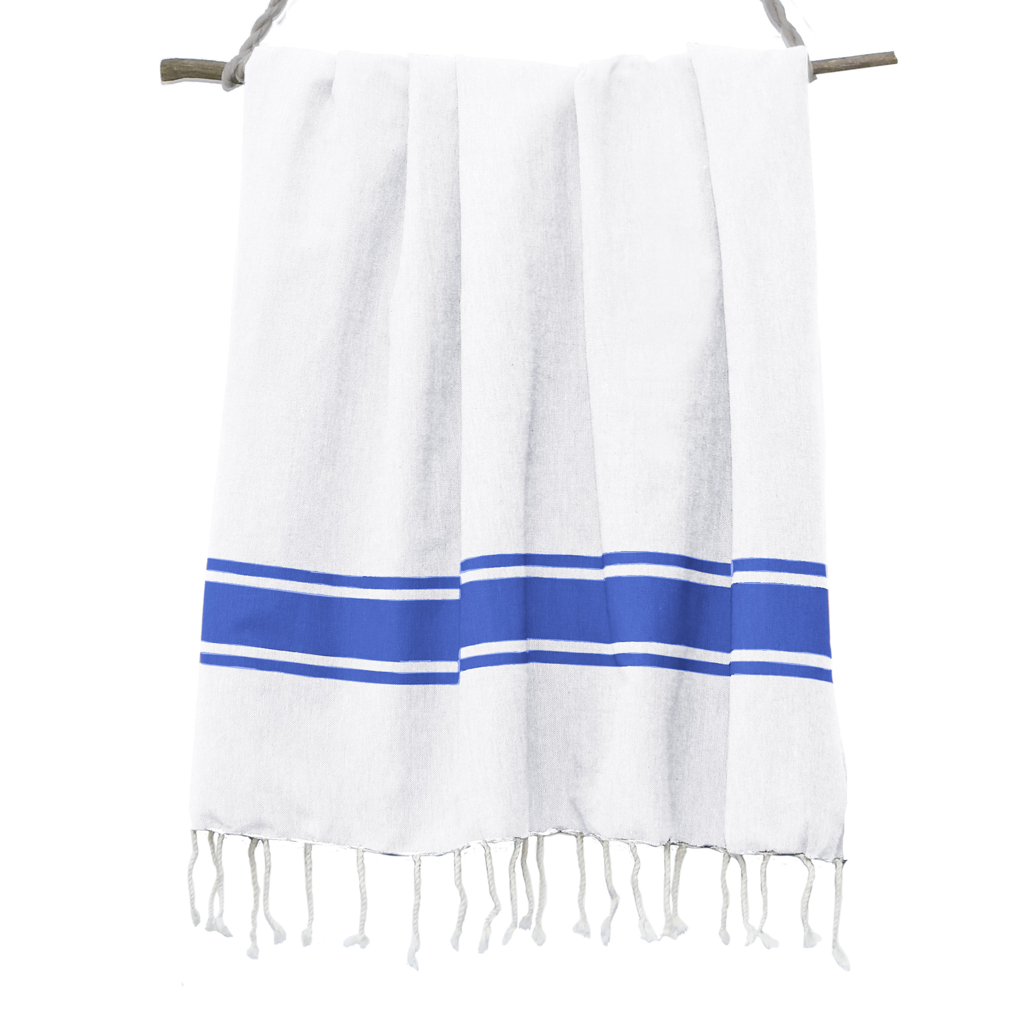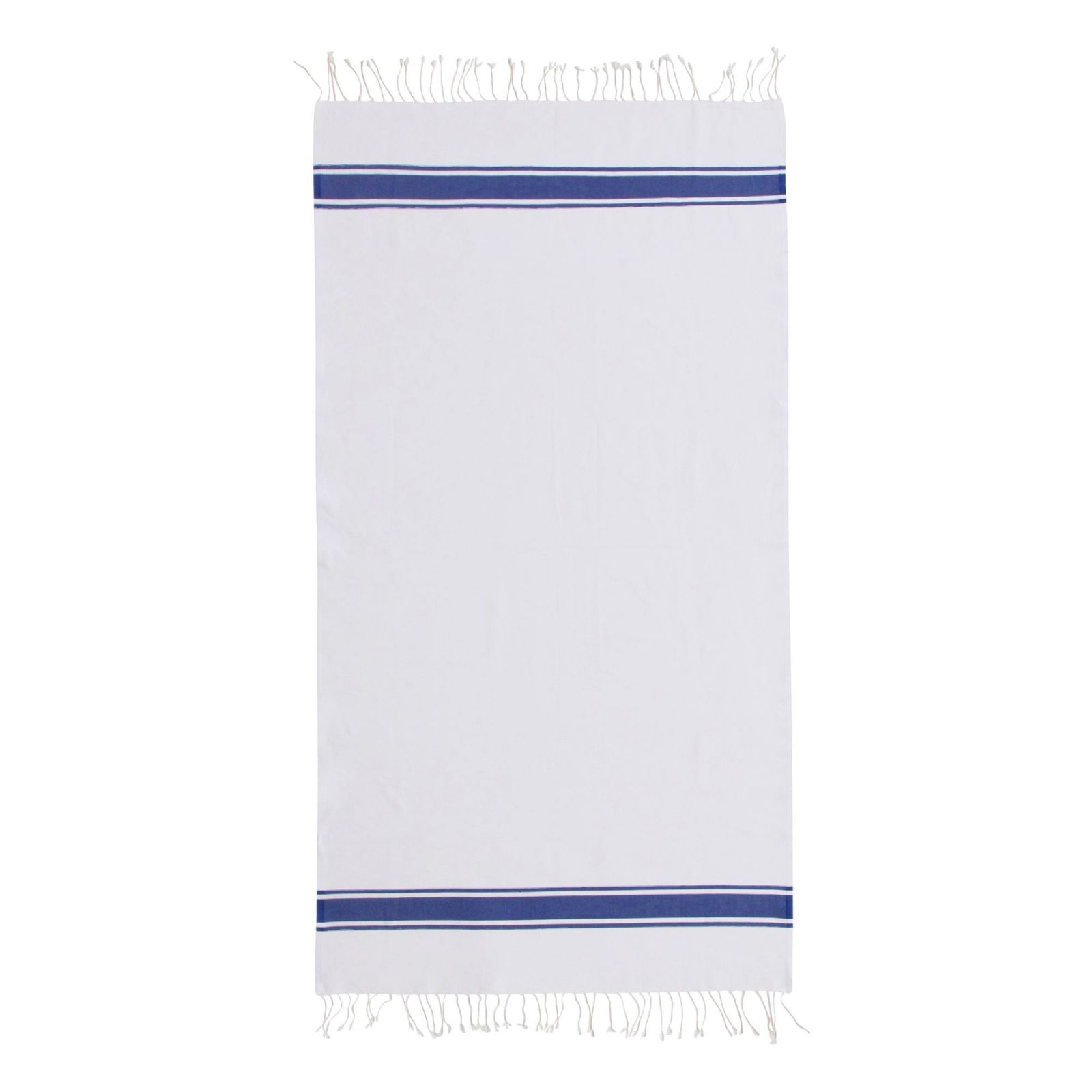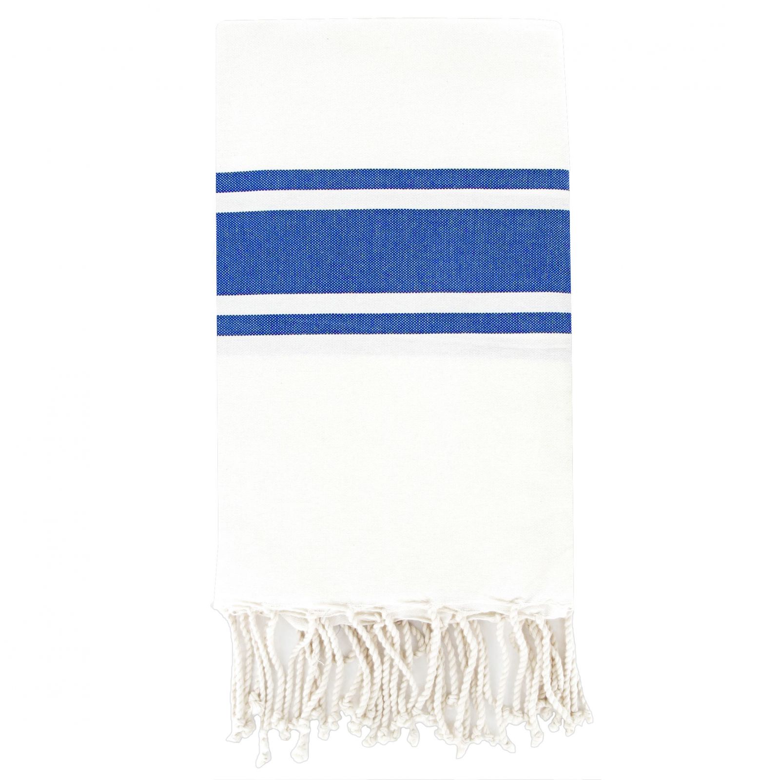 Fouta Traditionelle Unie St Tropez - Rayure Classique -Blanc/Bleu grec