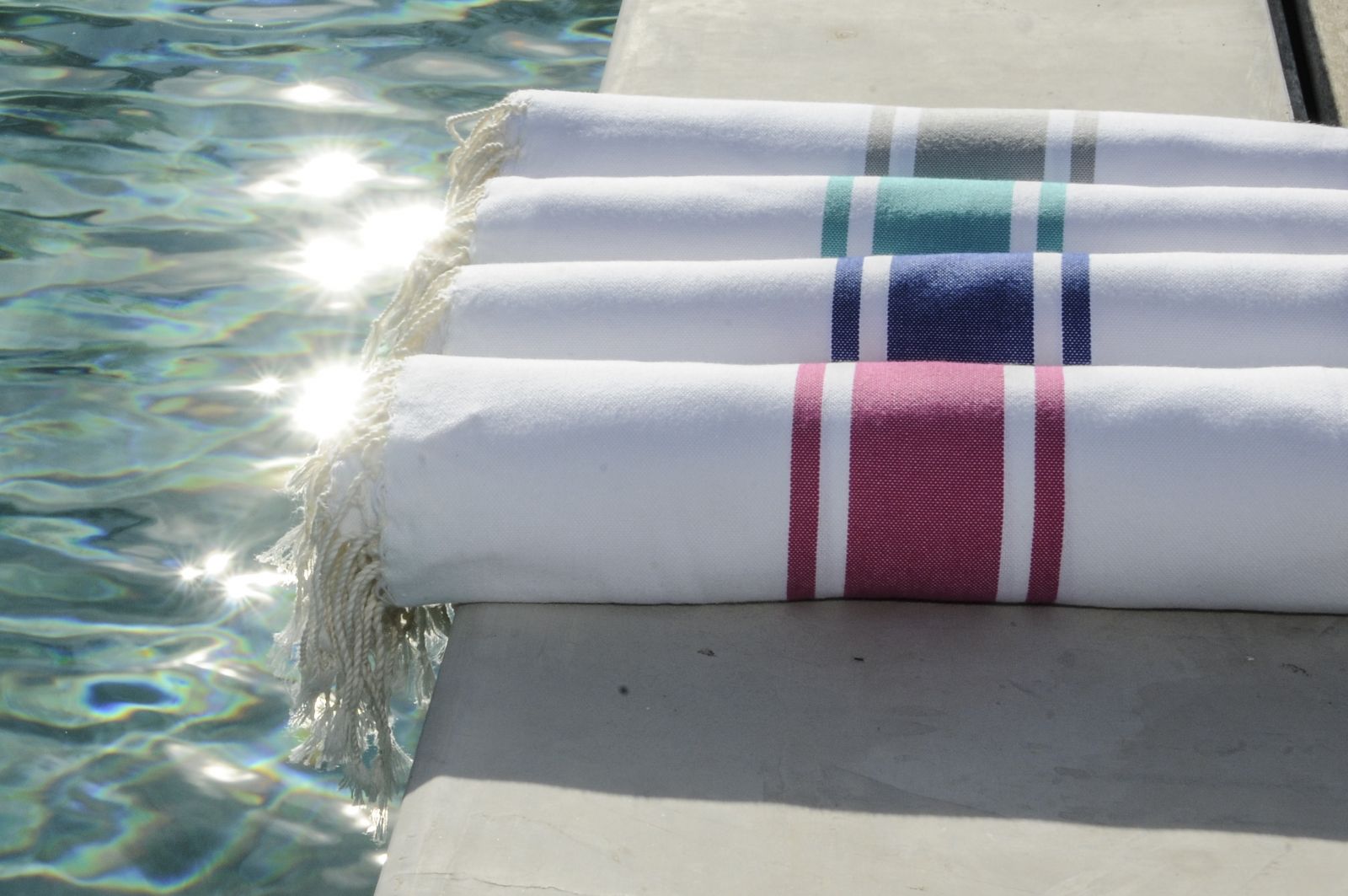 Hand-woven by craftsmen from southern Tunisia using 100% natural materials, our Best Seller - the traditional Fouta "SAINT TROPEZ" - combines lightness with incredible absorption capacity. Elegant, light and easy to maintain, its wide range of colors and the quality of its weaving allow many different uses. In addition to being the versatile accessory of our summers; beach or bath towels, sarong, scarves, throw it has become an essential object of decoration of our interiors and exteriors; draped on the back of a chair, neatly folded at the end of the bed .... it instantly brings chic and elegance to your home.
