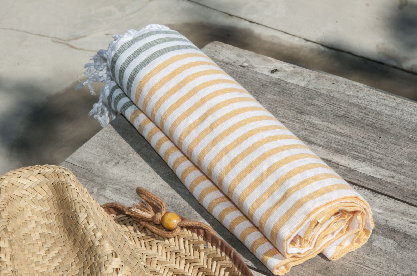 Titre : Fouta Bora Bora - Jaune Safran / Vert Kaki