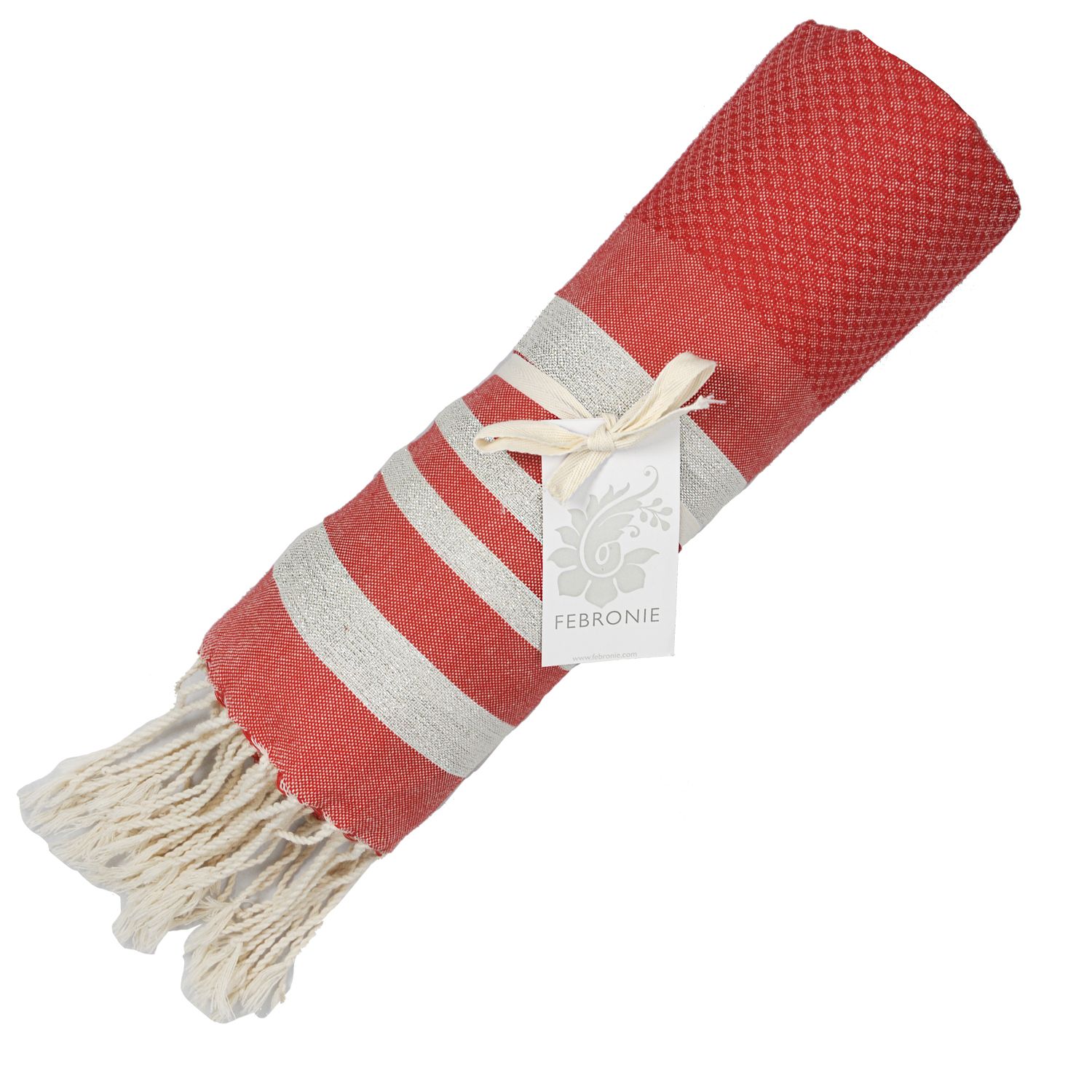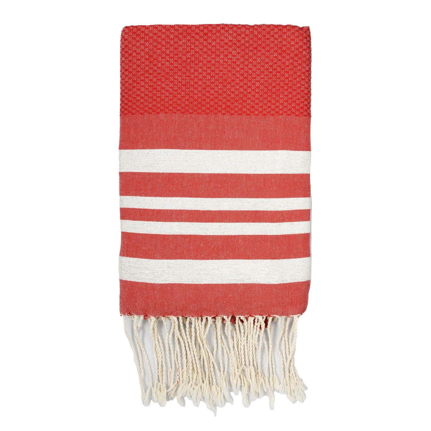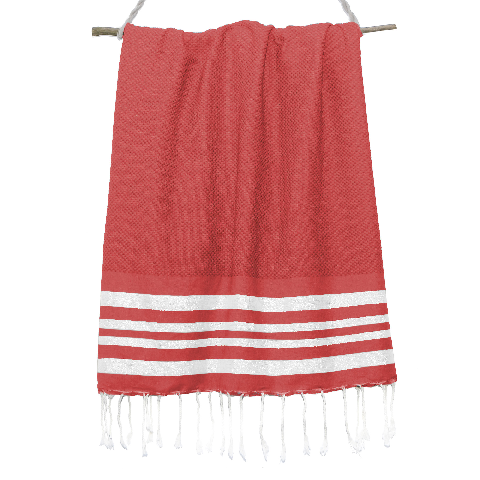 Titre : Fouta Nid d'abeille Hamptons - Lurex - Rouge / Argent