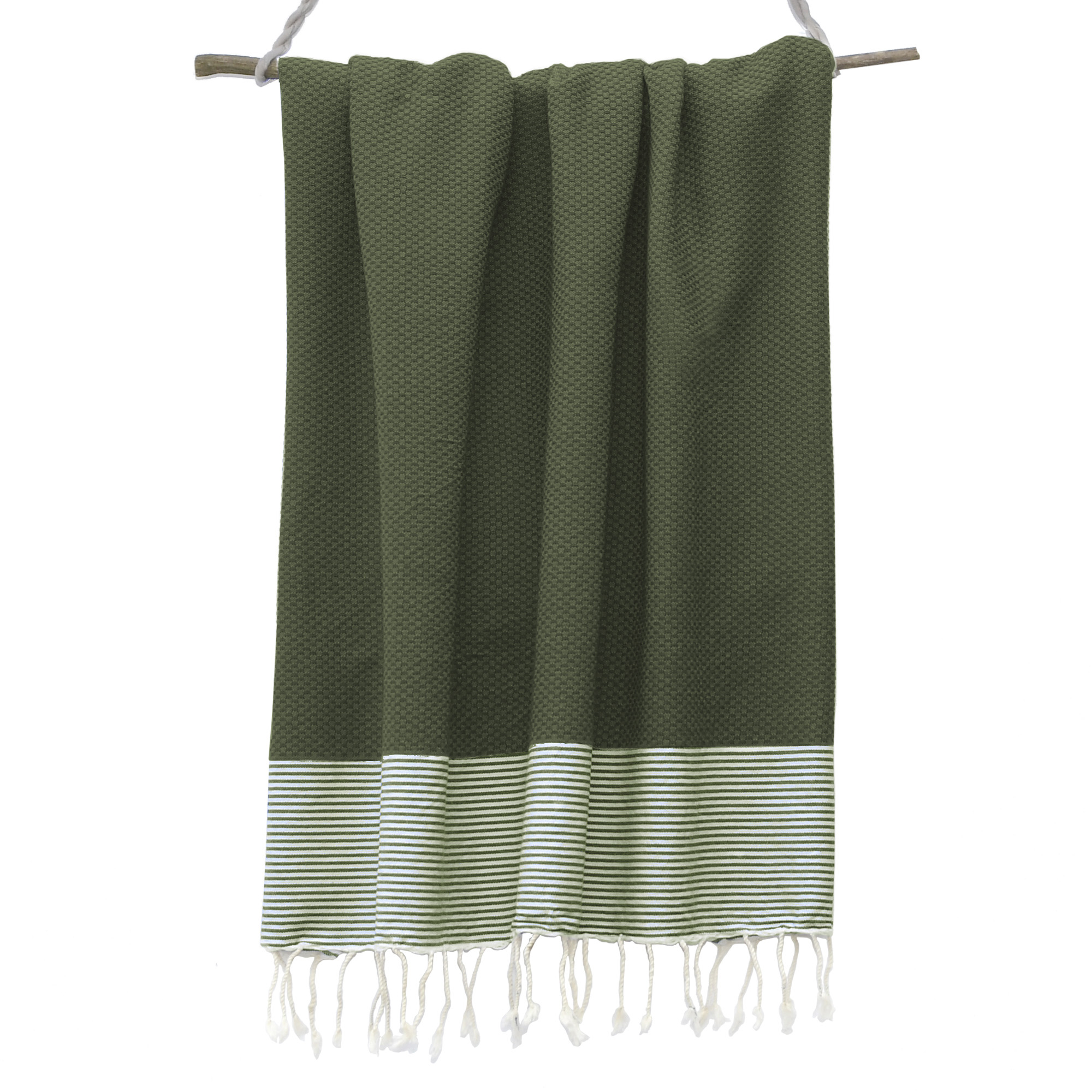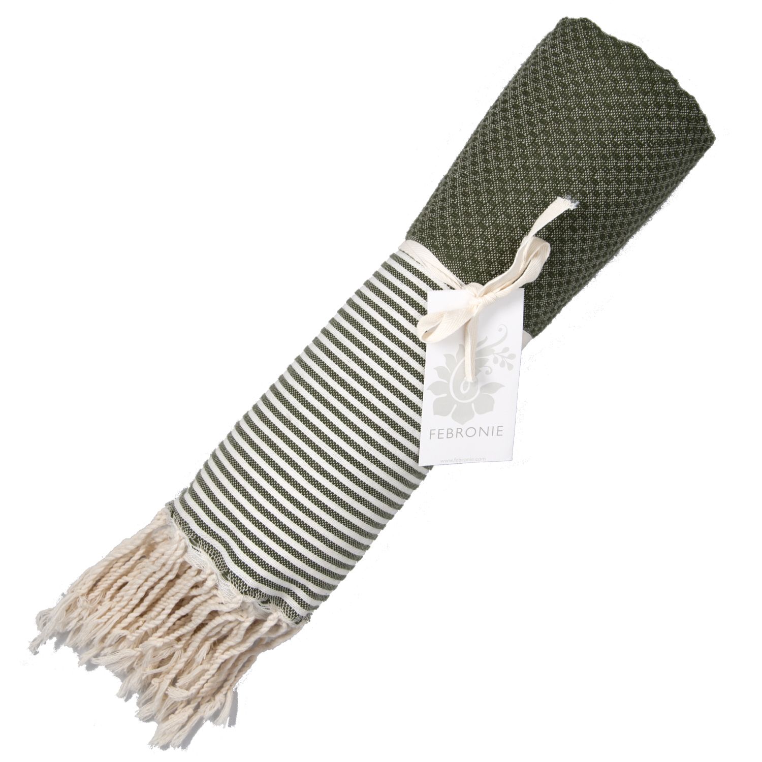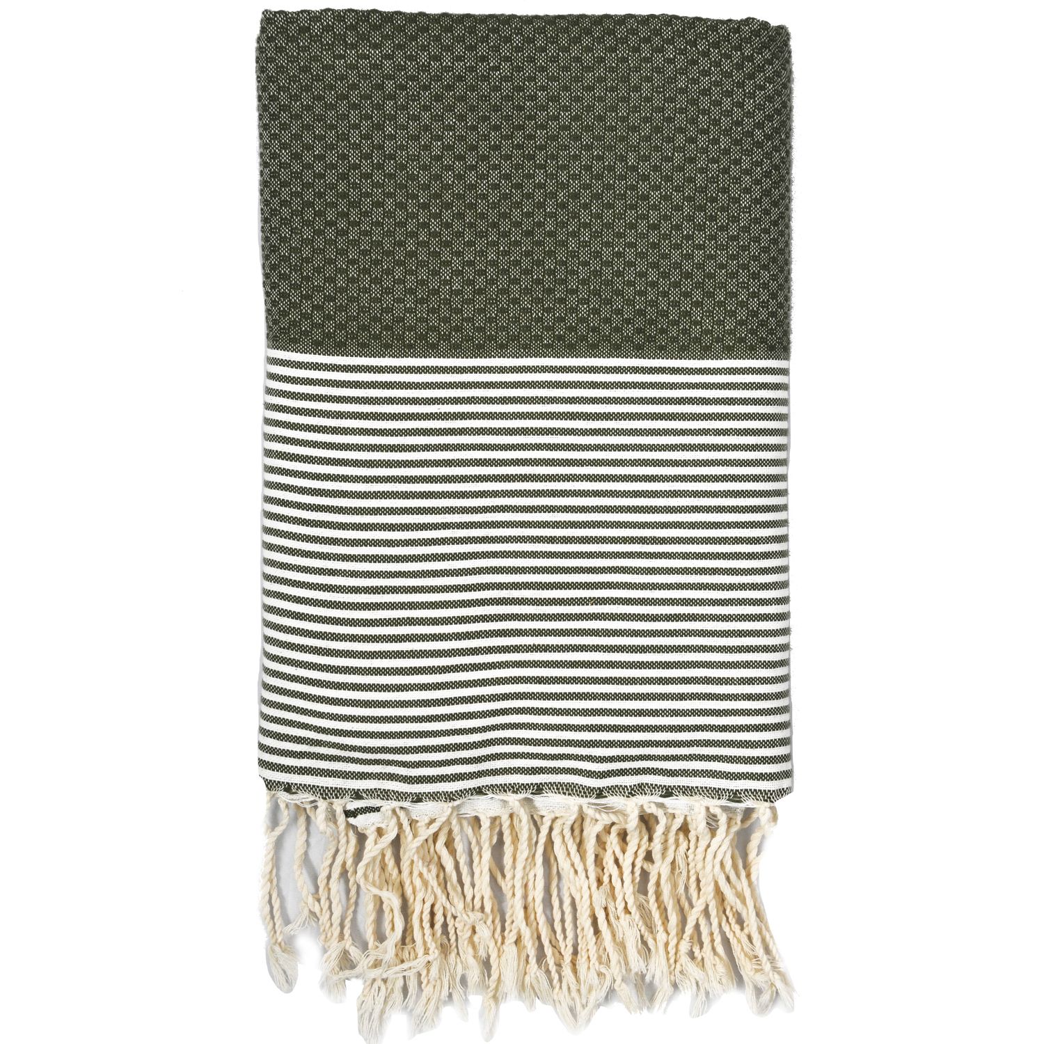 Titre : Fouta Nid d'abeille Ibiza - Rayure fine - Vert Kaki