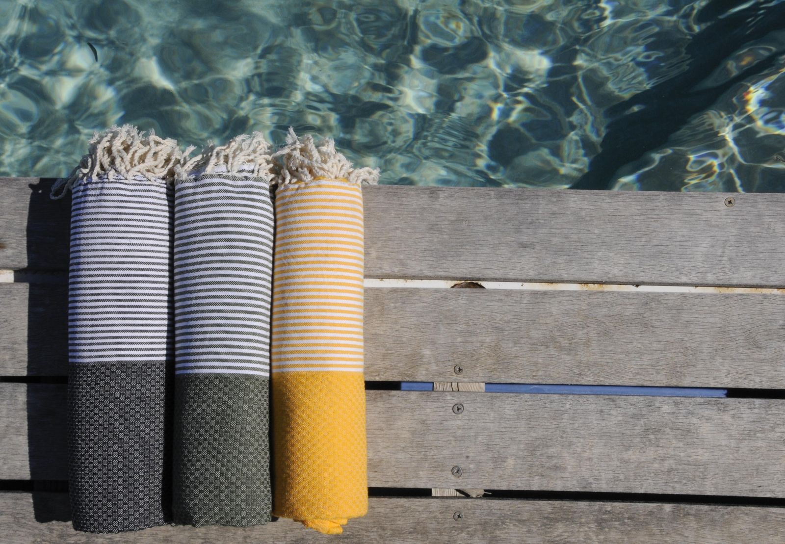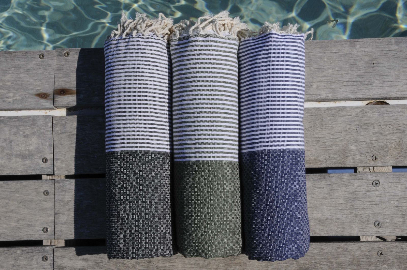 Description : Tissée main par des artisans du sud de la Tunisie utilisant des matériaux 100 % naturels – la Fouta Nid d´abeille "IBIZA" – est tissée avec une texture plutôt qu´une finition plate renforçant ainsi sa capacité d absorption et sa douceur au toucher. Elégante, légère et facile d´entretien, sa large gamme de couleurs et la qualité de son tissage lui permettent une déclinaison sous différents usages. En plus d´être l´accessoire par excellence de nos étés; serviettes de plage ou de salle de bain, paréo, foulards, étoles, elle est devenue l´objet incontournable de décoration de nos intérieurs et extérieurs; drapée sur le dos d’une chaise, soigneusement pliée en bout de lit....elle apporte instantanément du chic et de l’élégance à votre intérieur.