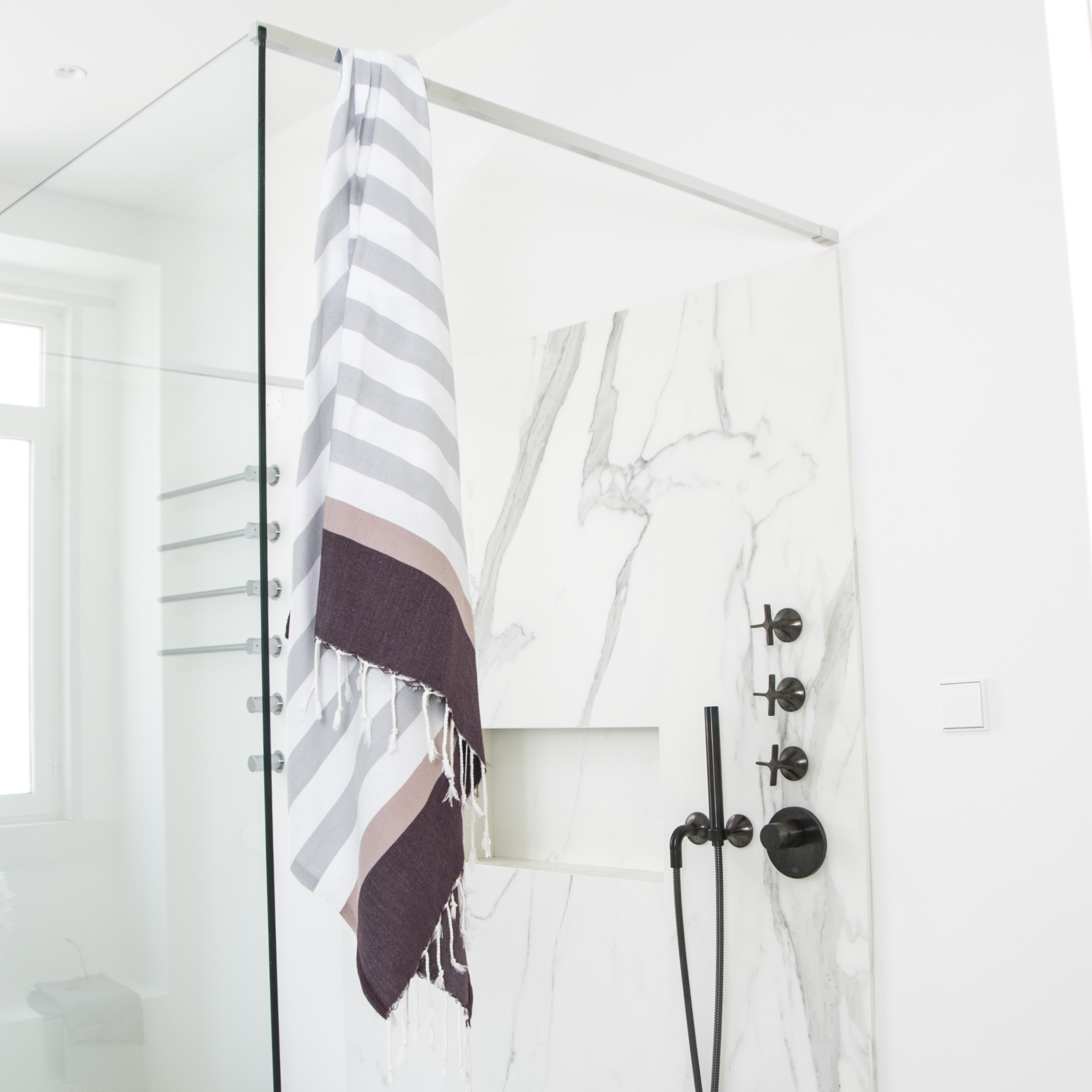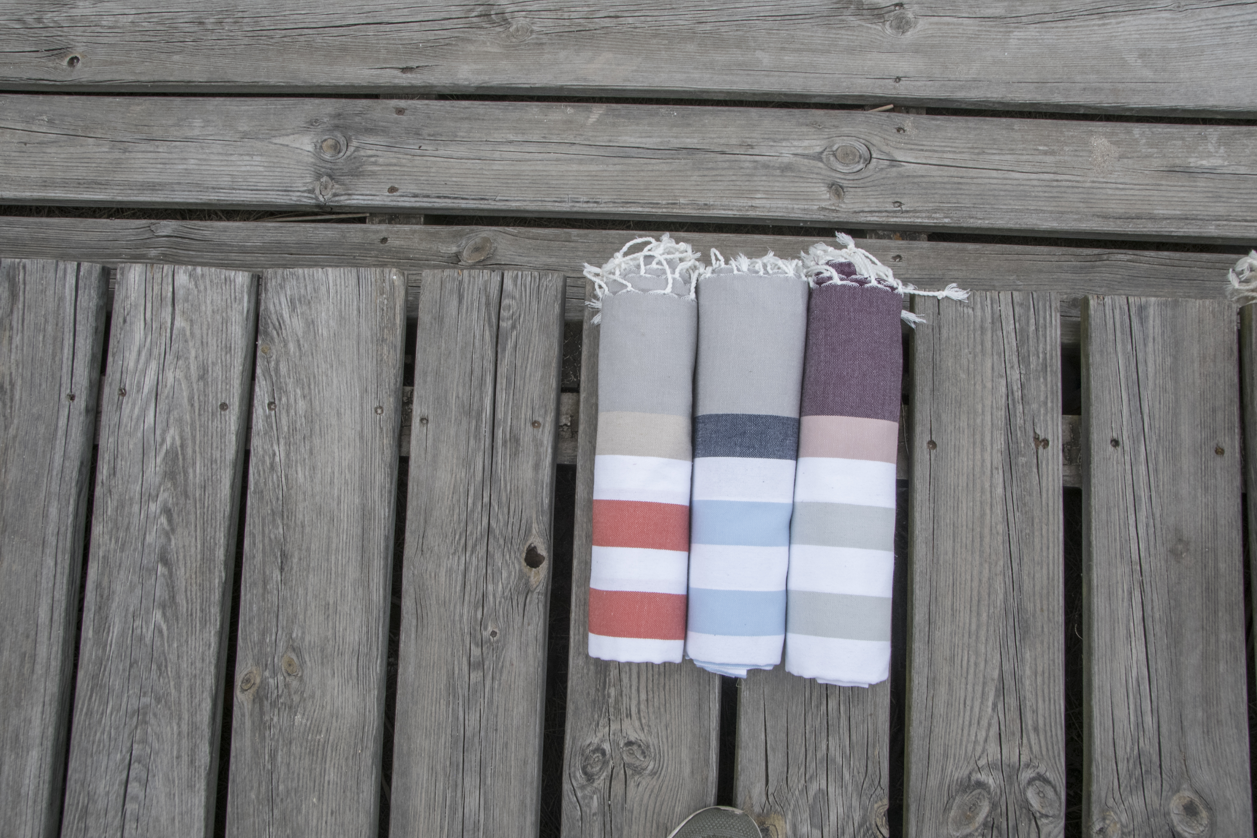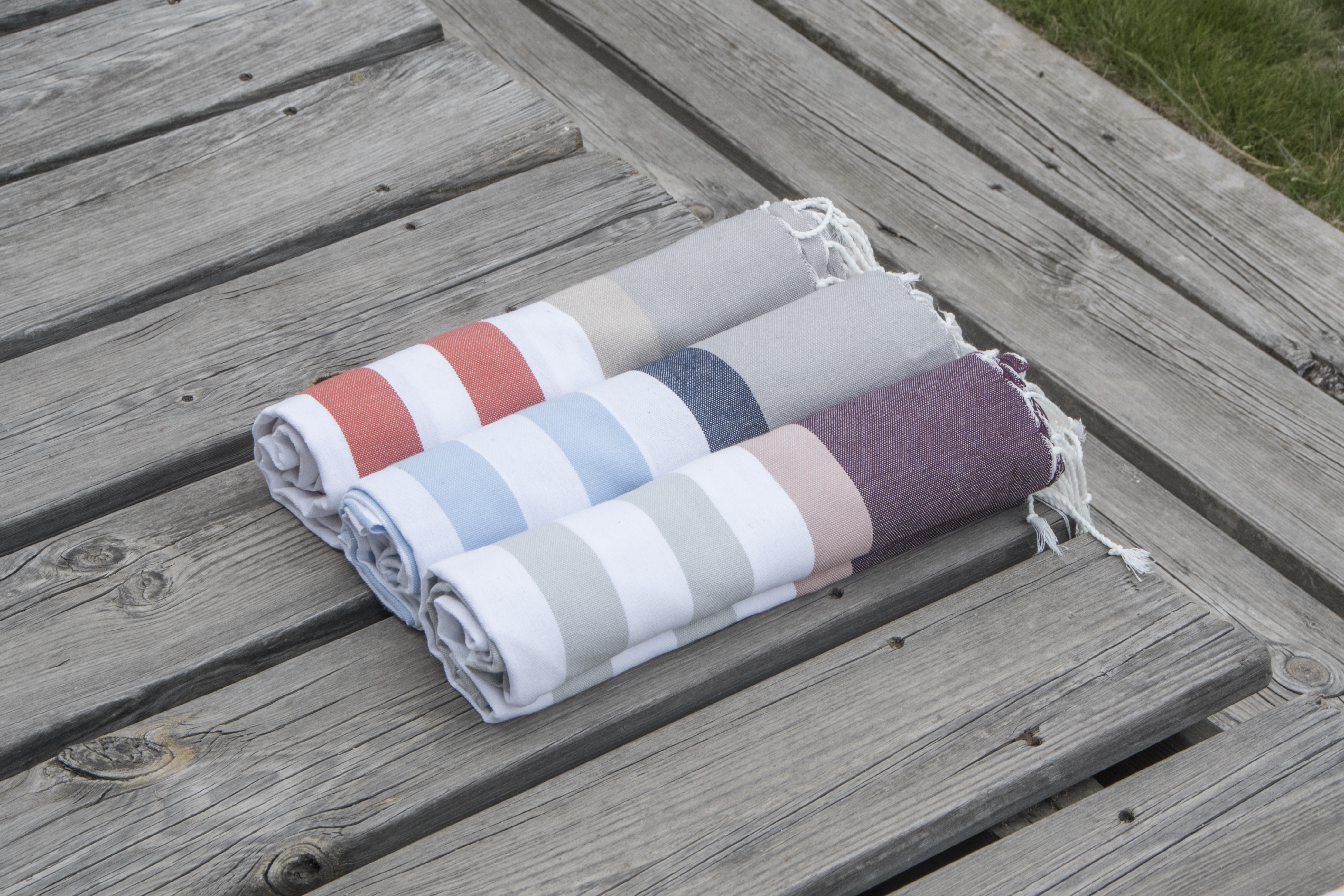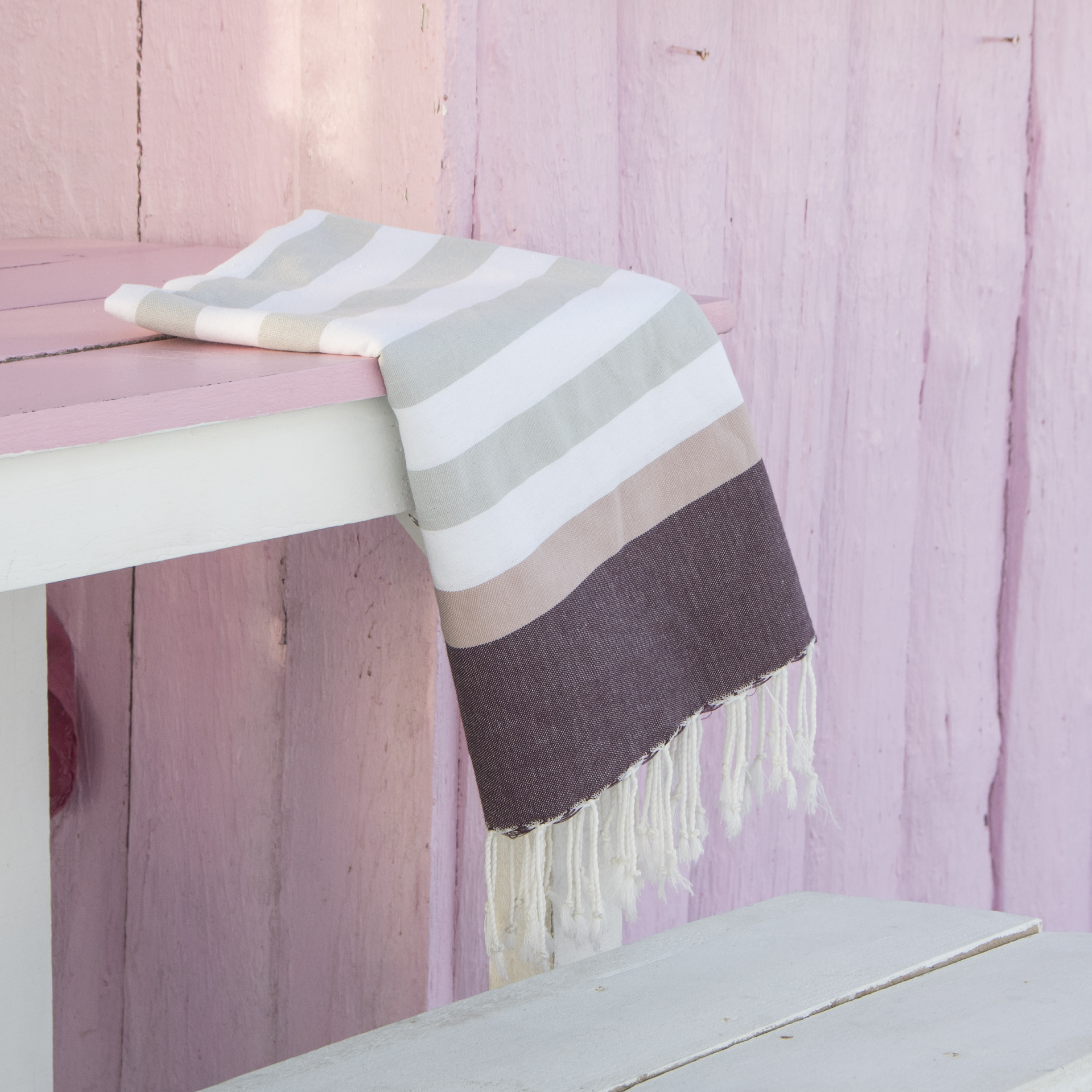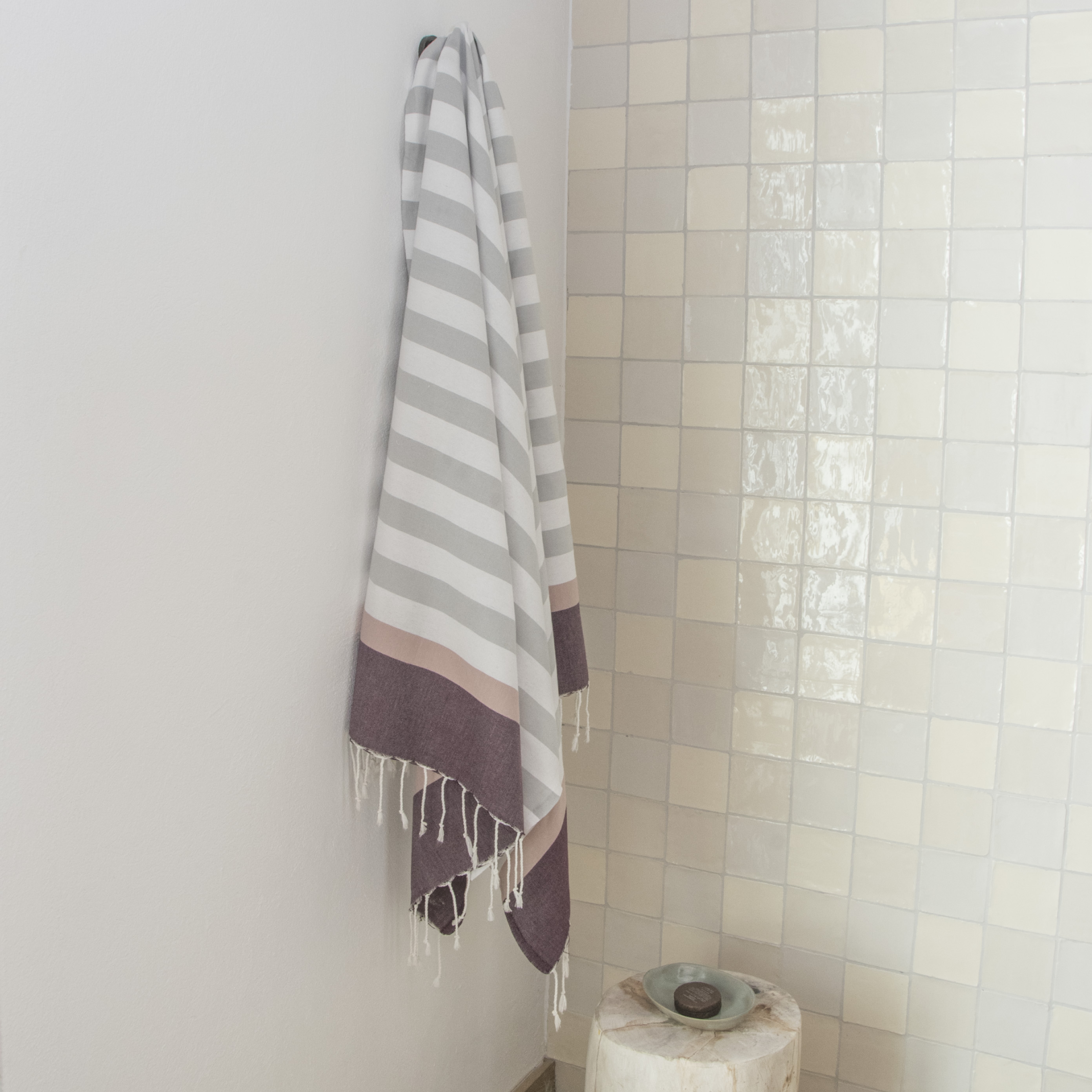 Fouta Arcachon Gris Perle / Blanc / Rose Pâle / Prune
