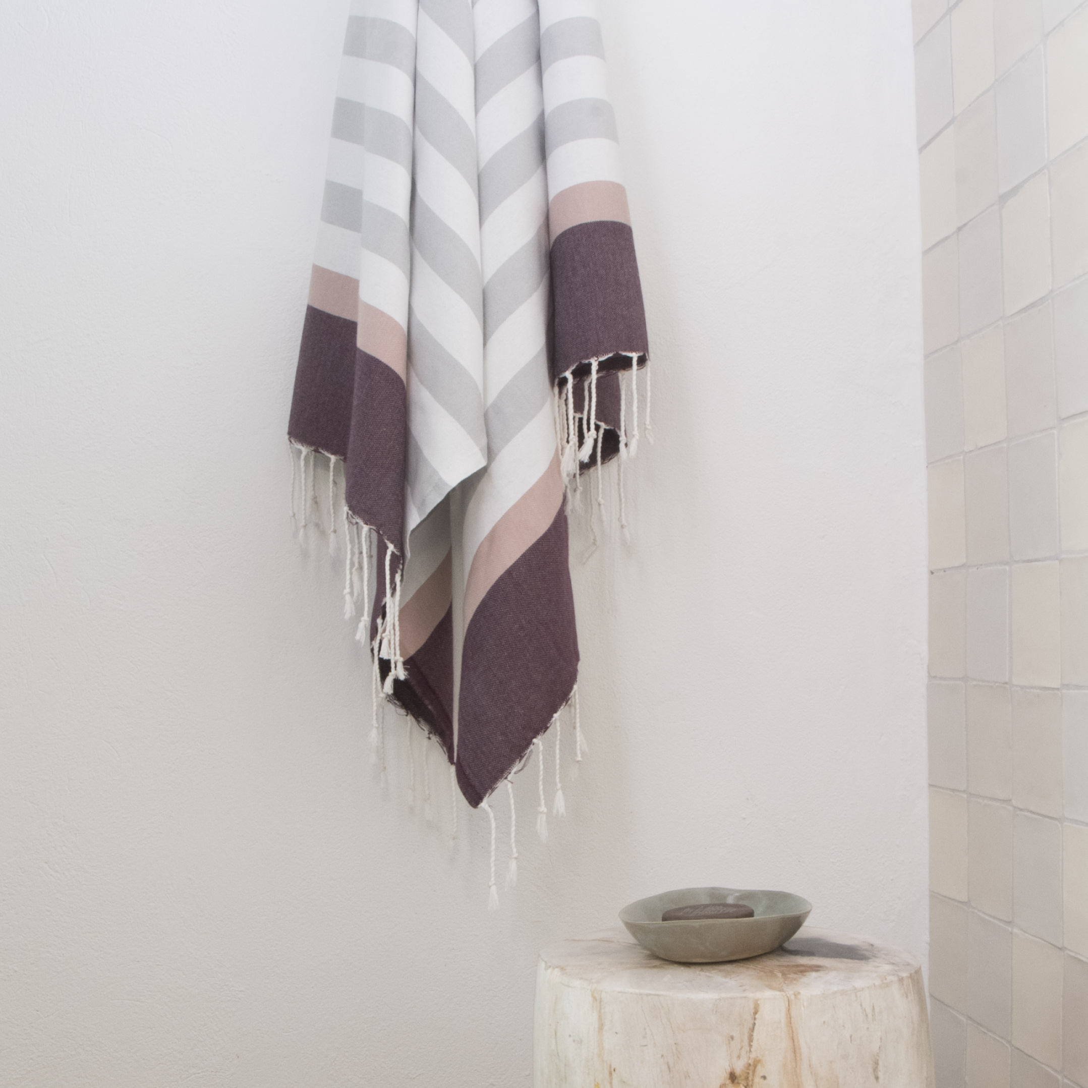Fouta Arcachon Pearl Grey / White / Pale Pink / Plum