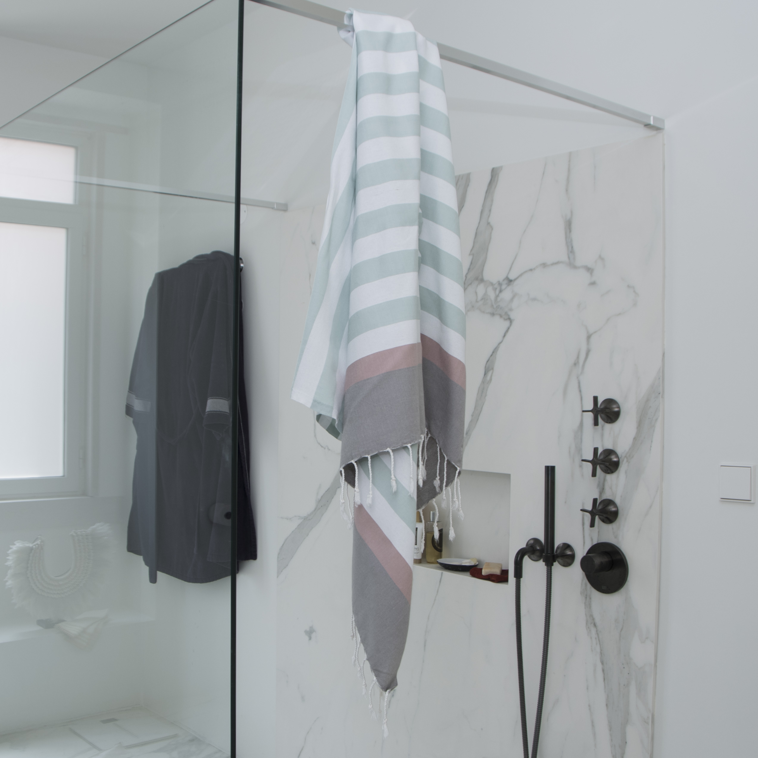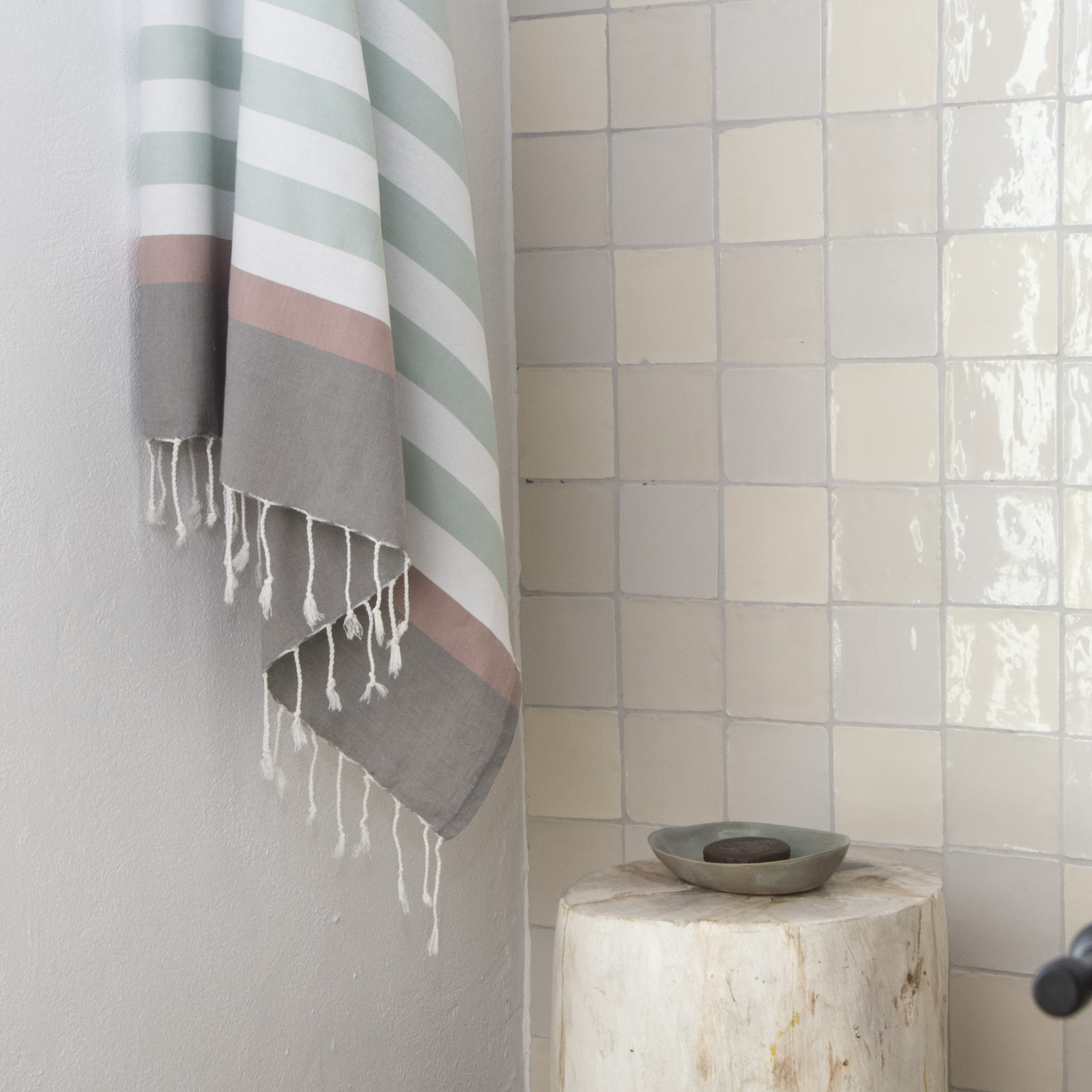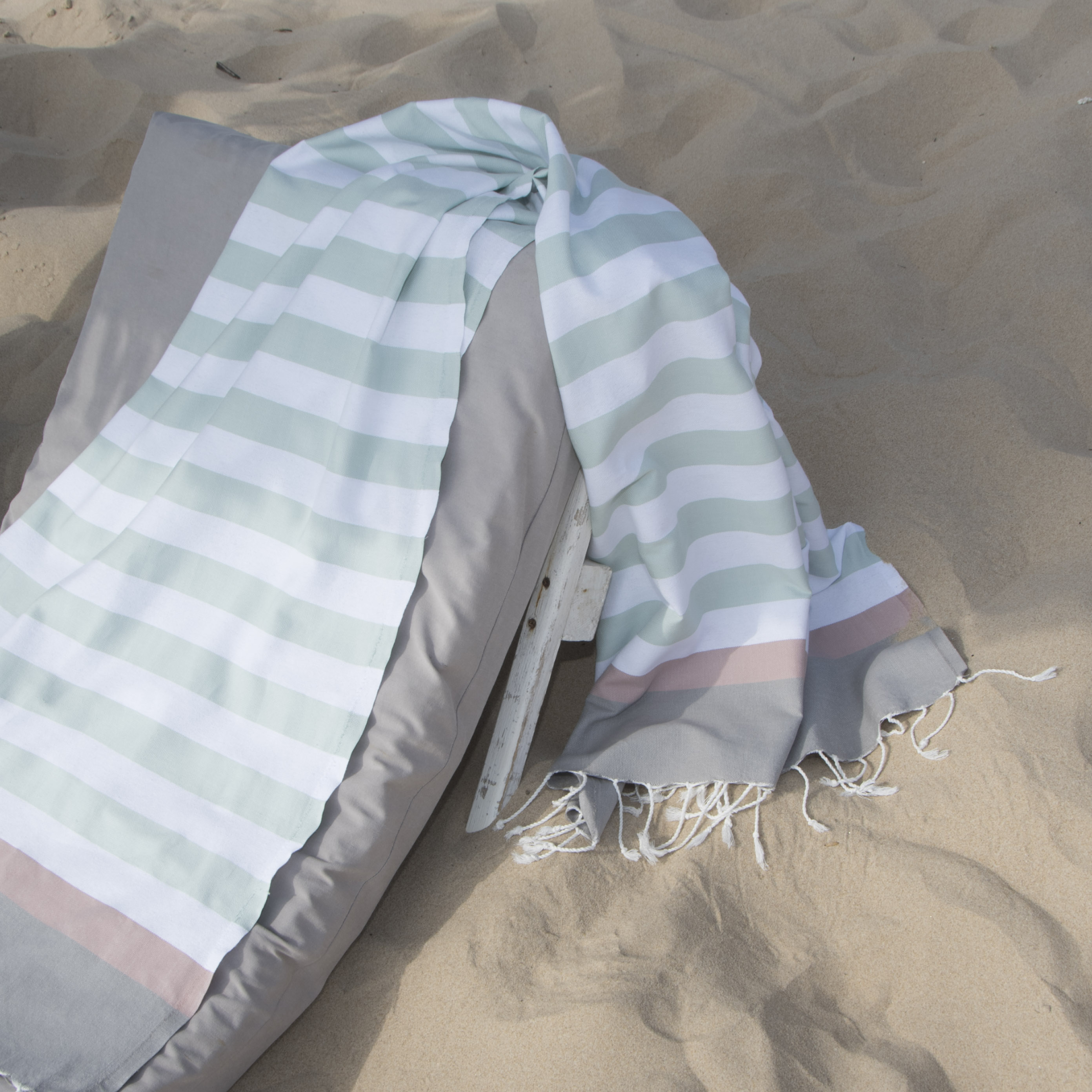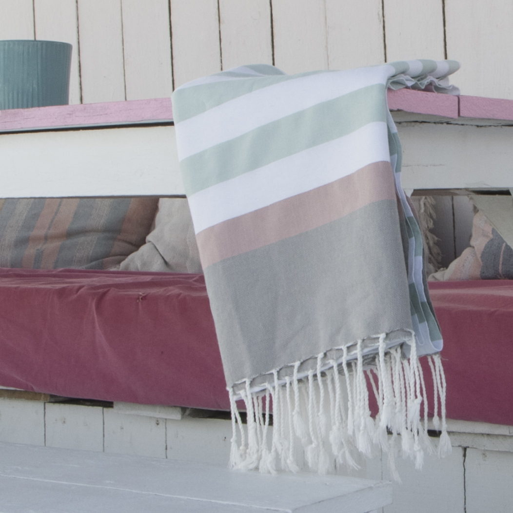 Fouta Arcachon Water Green / White / Pale Pink / Pearl Grey