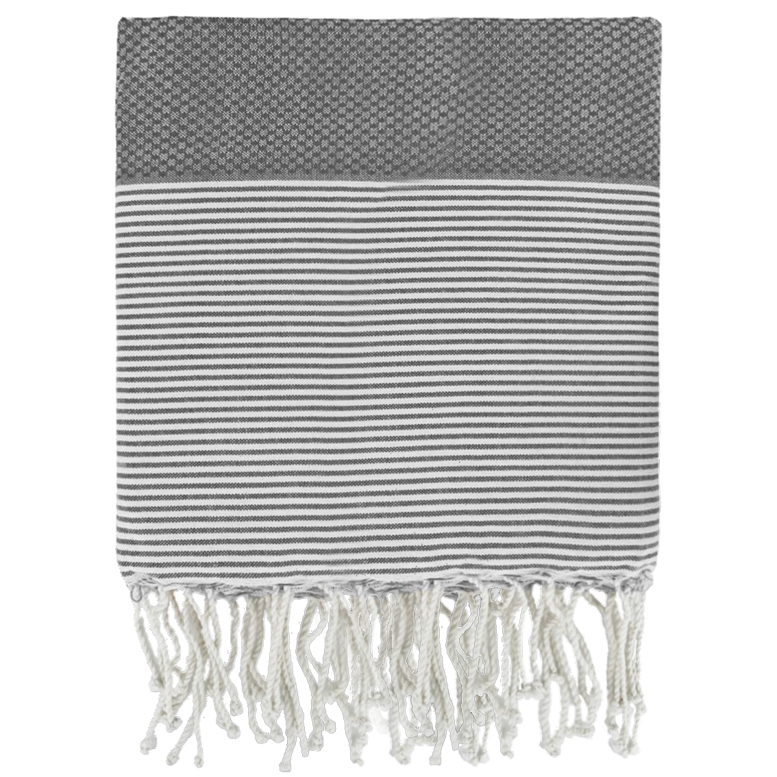 Titre : Fouta Famiglia XXL Nid d'abeille Ibiza - Rayure fine - Gris Moyen