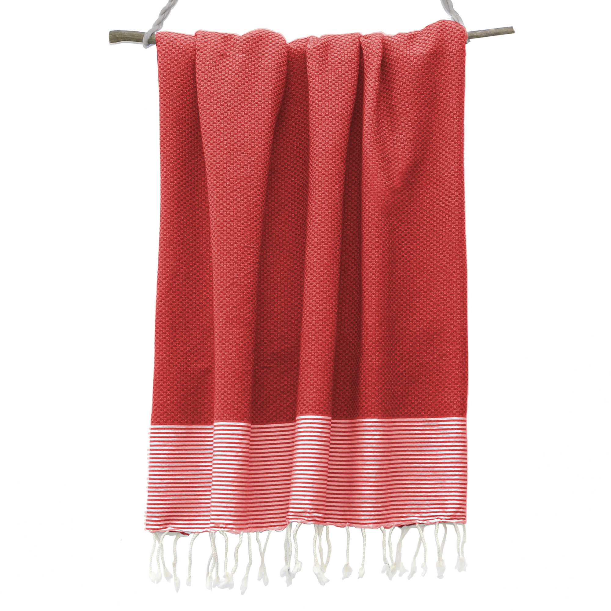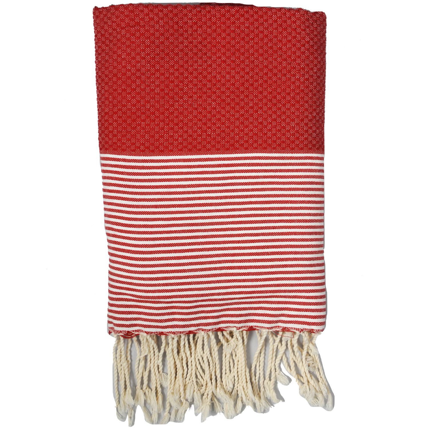 Titre : Fouta Nid d'abeille Ibiza - Rayure fine - Rouge