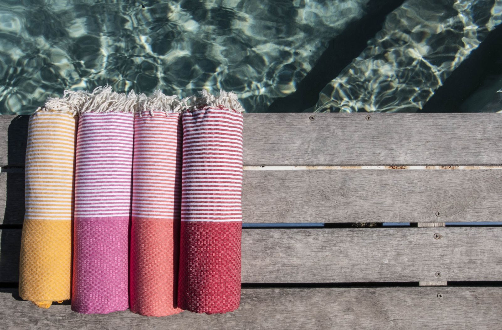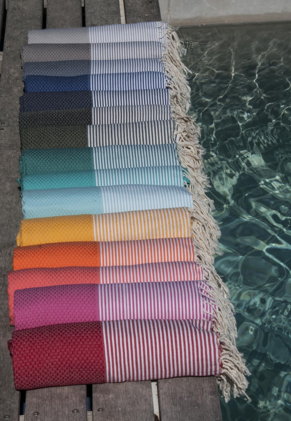 Hand-woven by craftsmen from southern Tunisia using 100% natural materials - the Hand-woven by craftsmen from southern Tunisia using 100% natural materials - the honeycomb "IBIZA" - Fouta is woven with a texture rather than a flat finish, reinforcing its absorption capacity and softness to the touch. Elegant, light and easy to maintain, its wide range of colors and the quality of its weaving allow many different uses. In addition to being the versatile accessory of our summers; beach or bath towels, pareo, scarves, stoles, it has become the essential object of decoration of our interiors and exteriors; draped on the back of a chair, neatly folded at the end of the bed .... it instantly brings chic and elegance to your home.