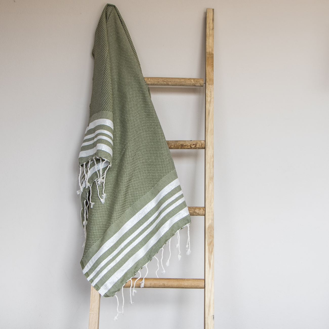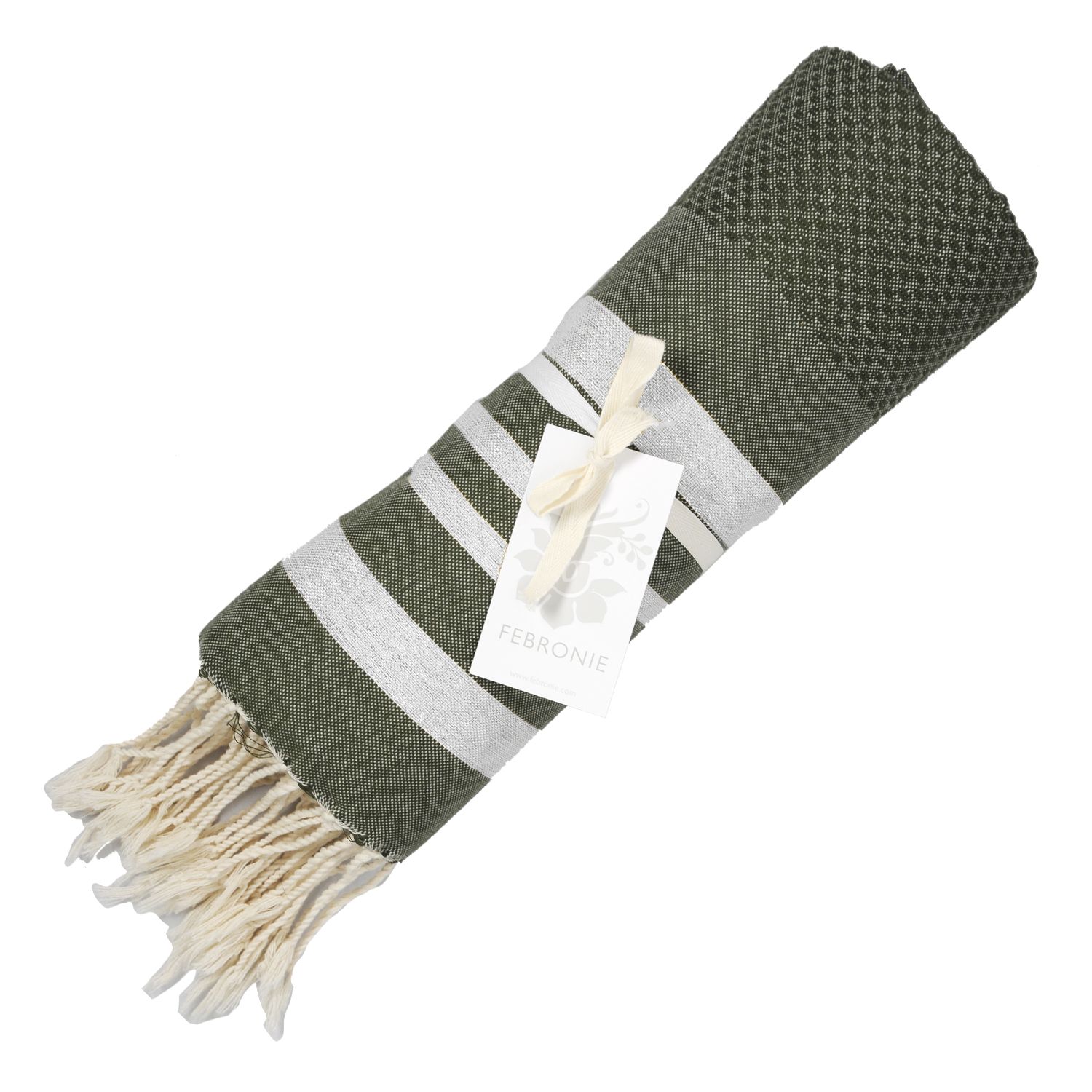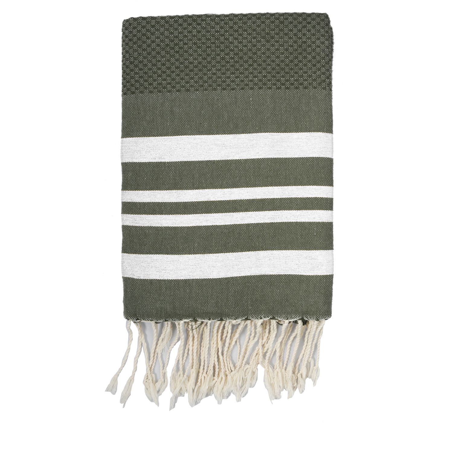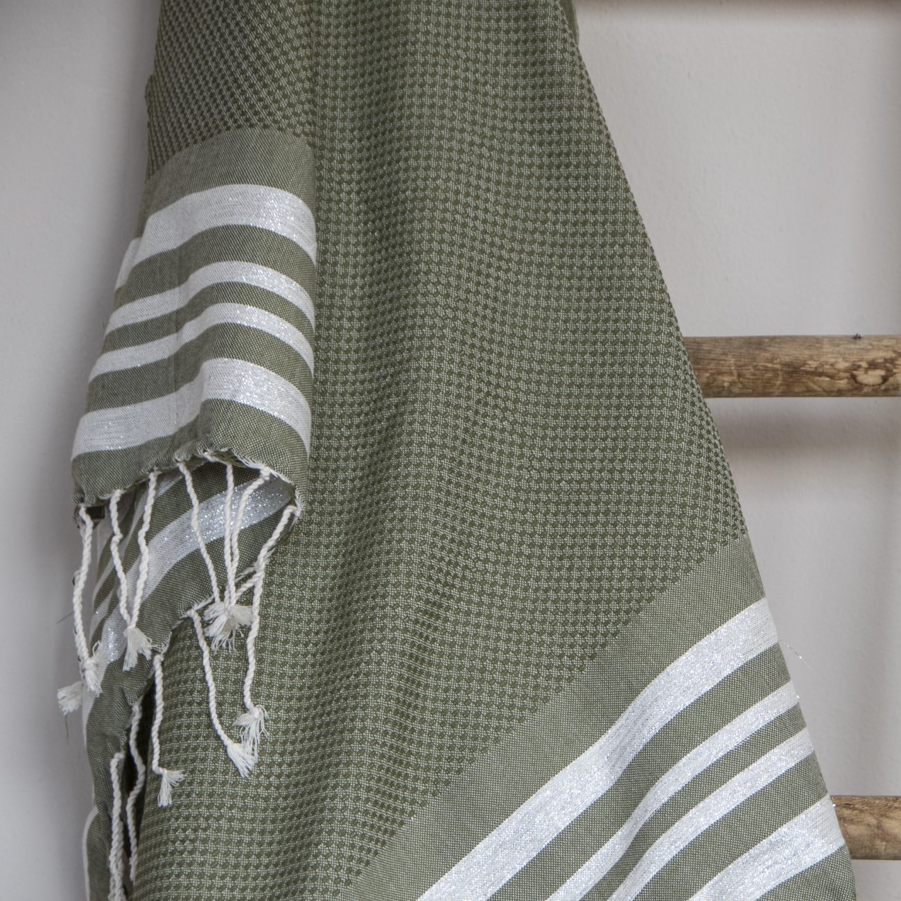 Fouta Nid d'abeille Hamptons - Lurex - Vert Kaki / Argent