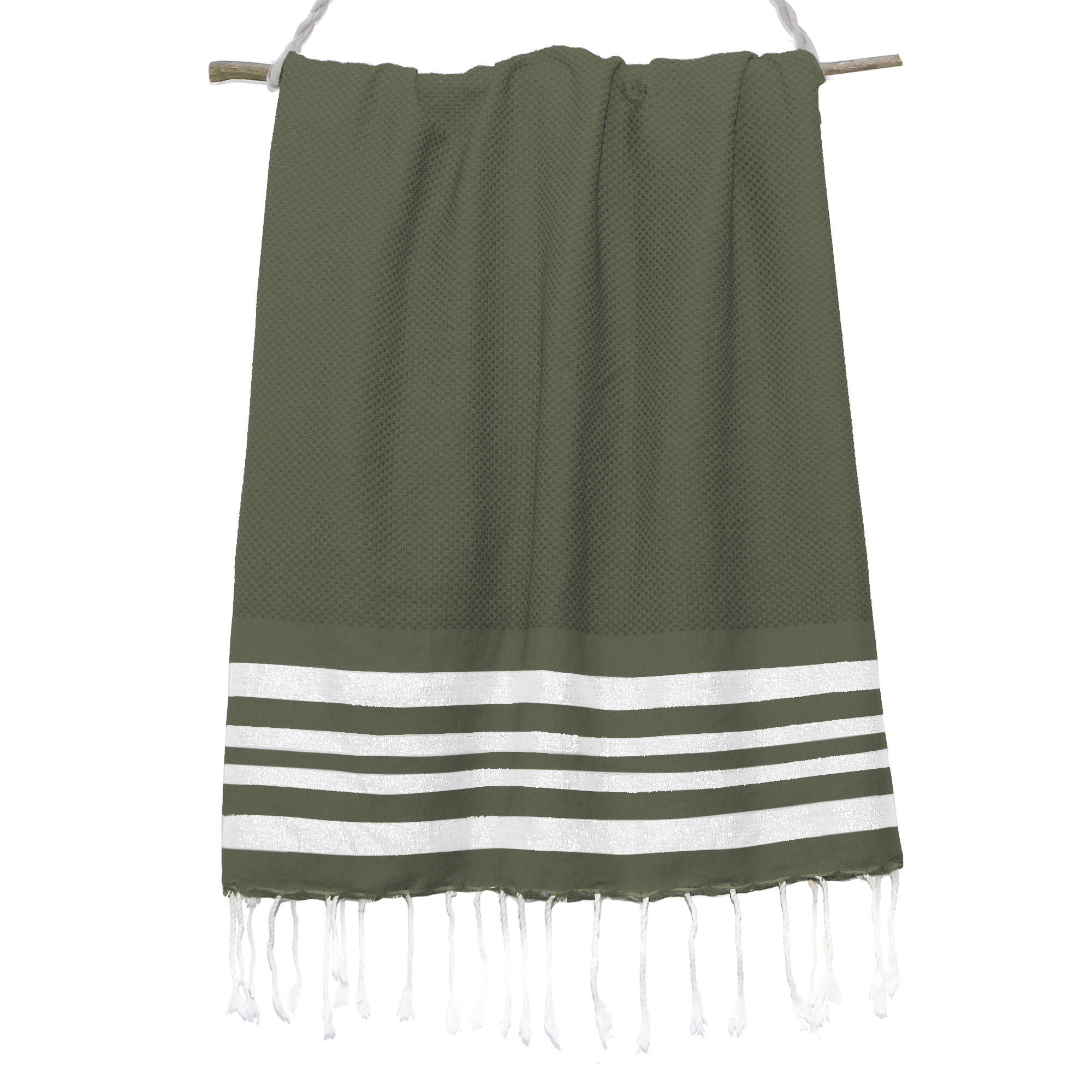 Titre : Fouta Nid d'abeille Hamptons - Lurex - Vert Kaki / Argent