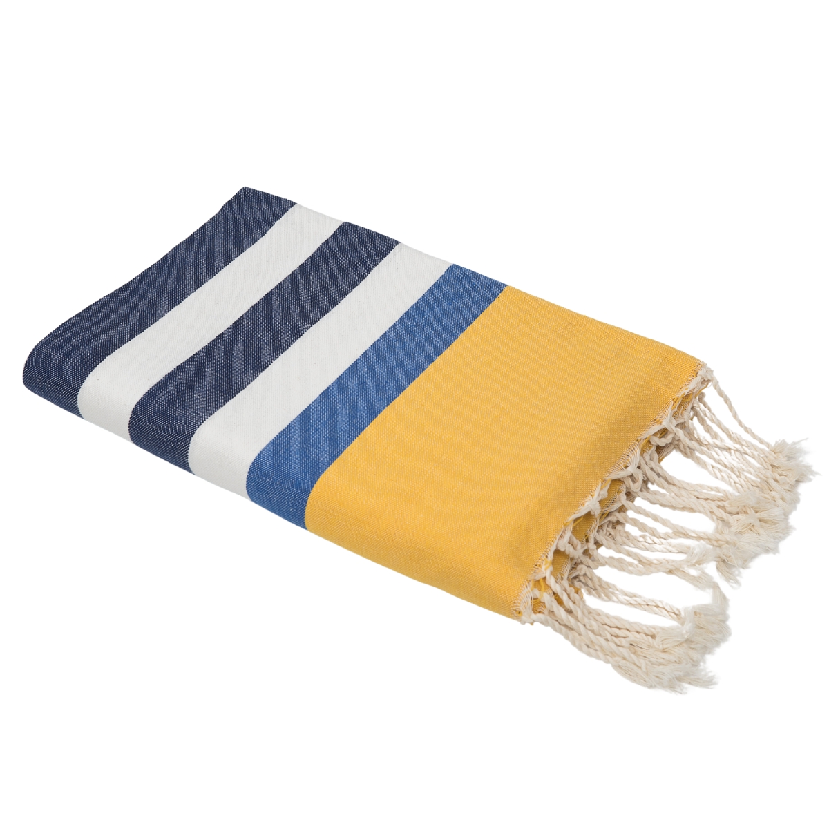 ARCACHON Fouta tricolore coton 100x200 bleu jean / jaune / bleu