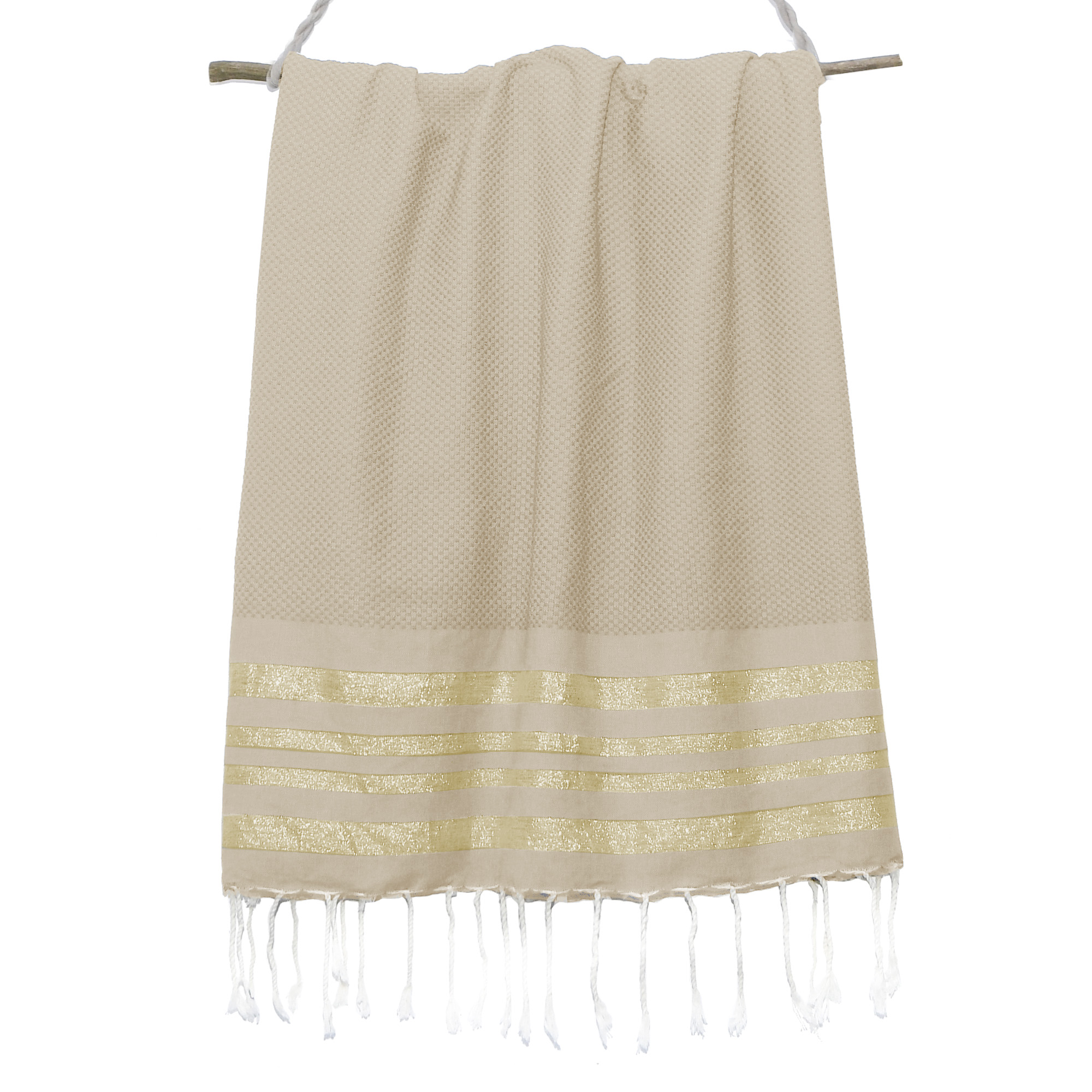 Titre : Fouta Nid d'abeille Hamptons - Lurex - Beige / Or