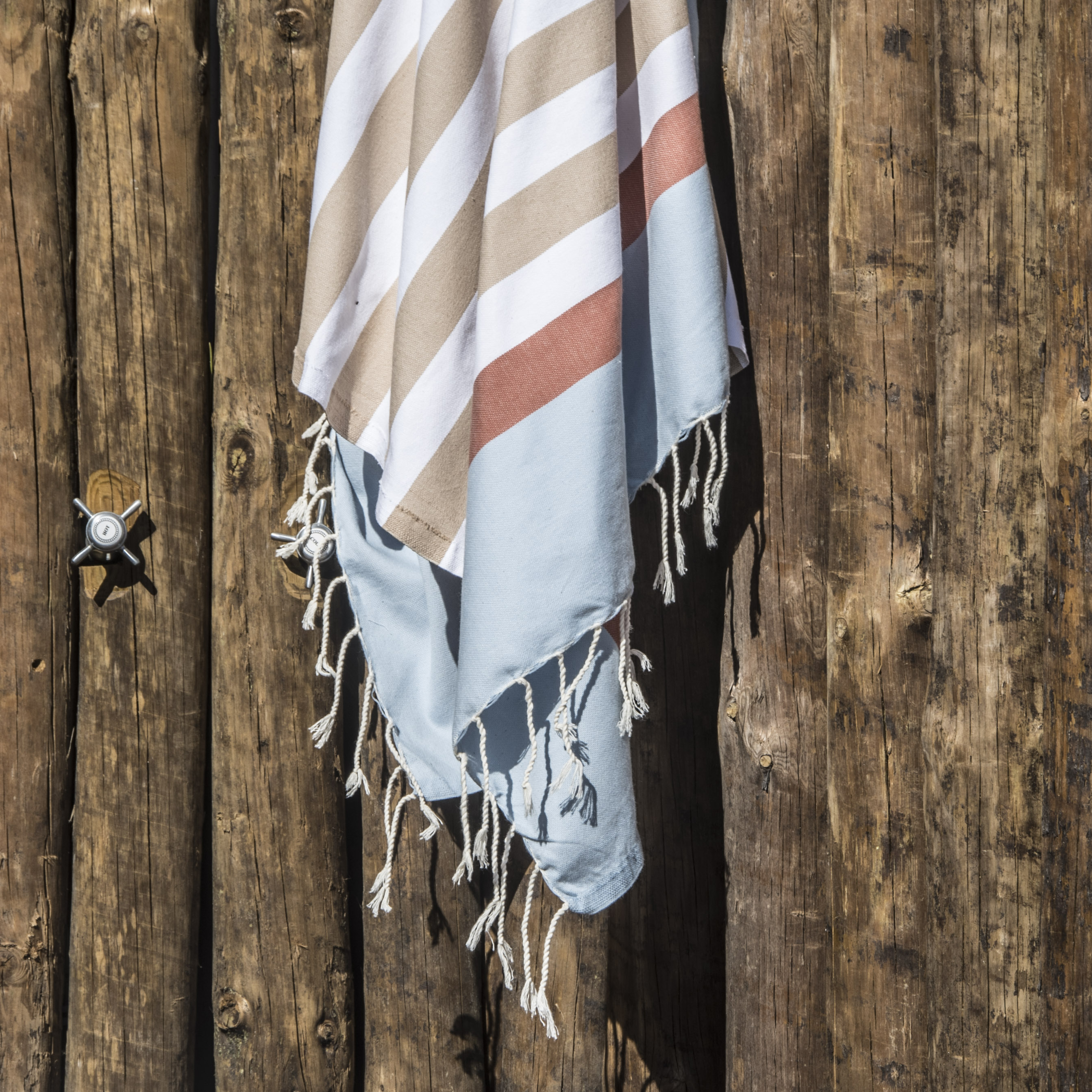 Fouta Arcachon Beige / Blanc / Terracotta / Bleu Ciel
