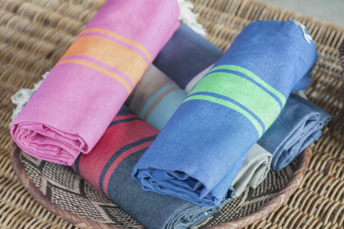 Hand-woven by craftsmen from southern Tunisia using 100% natural materials, our Best Seller - the traditional Bicolore Fouta "SAINT TROPEZ" - combines lightness with incredible absorption capacity. Elegant, light and easy to maintain, its wide range of colors and the quality of its weaving allow many different uses. In addition to being the versatile accessory of our summers; beach or bath towels, sarong, scarves, throw it has become an essential object of decoration of our interiors and exteriors; draped on the back of a chair, neatly folded at the end of the bed .... it instantly brings chic and elegance to your home.